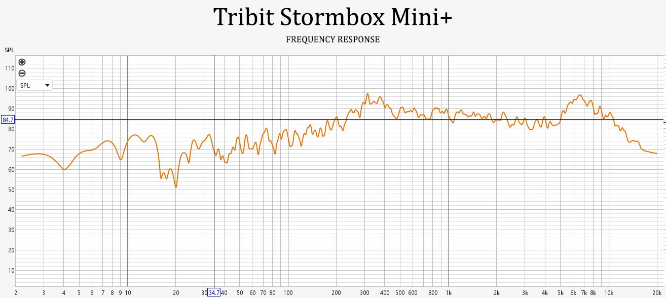 Out of the box, with the standard “Music” EQ set in the Tribit app, the StormBox Mini+ sounds decent, but lacks some detail in the highs and its midrange is somewhat inconsistent, with the mids (where most vocals and instruments are) being more elevated towards the low end than the upper end.